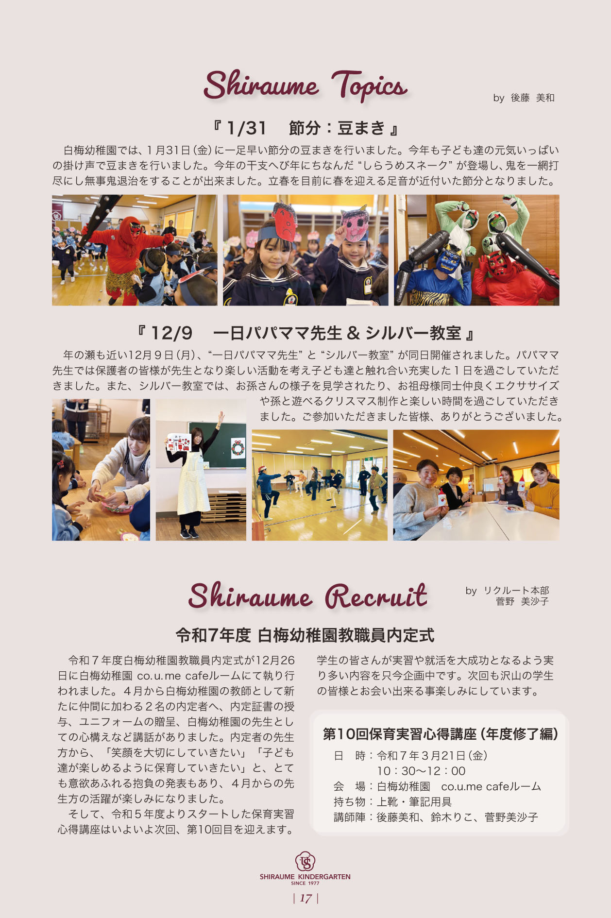 ARCHIVE 2026 2025.03.17 明星vol72_17 PREV 一覧へ戻る NEW 2026.02.27 幼稚園 《転入園相談会》 4/20(月)春の転入… 2026.02.17 未就園児教室 4月8日 春限定ベビ-マッサージ開催 2026.02.02 幼稚園 《0、1歳児 co.u.me cafe未… 2026.01.30 幼稚園 《未就園児対象》3/30 3/31 春の… 2026.01.22 未就園児教室 《未就園児対象》3/26 白梅幼稚園「春… CATEGORY すべて 幼稚園 未就園児教室 ARCHIVE 2026 検索