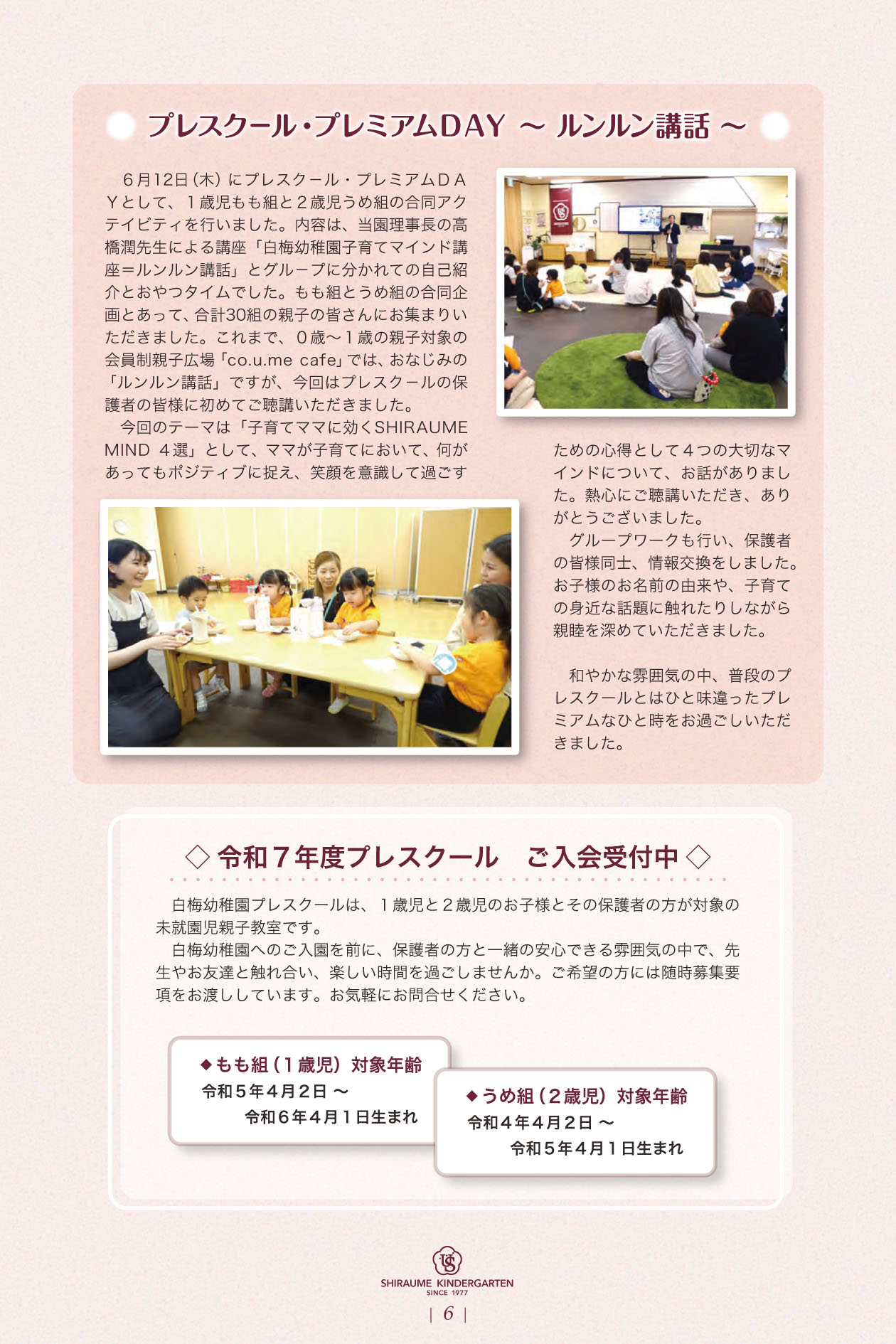 ARCHIVE 2026 2025.06.30 明星vol73_06 PREV 一覧へ戻る NEW 2026.02.27 幼稚園 《転入園相談会》 4/20(月)春の転入… 2026.02.17 未就園児教室 4月8日 春限定ベビ-マッサージ開催 2026.02.02 幼稚園 《0、1歳児 co.u.me cafe未… 2026.01.30 幼稚園 《未就園児対象》3/30 3/31 春の… 2026.01.22 未就園児教室 《未就園児対象》3/26 白梅幼稚園「春… CATEGORY すべて 幼稚園 未就園児教室 ARCHIVE 2026 検索