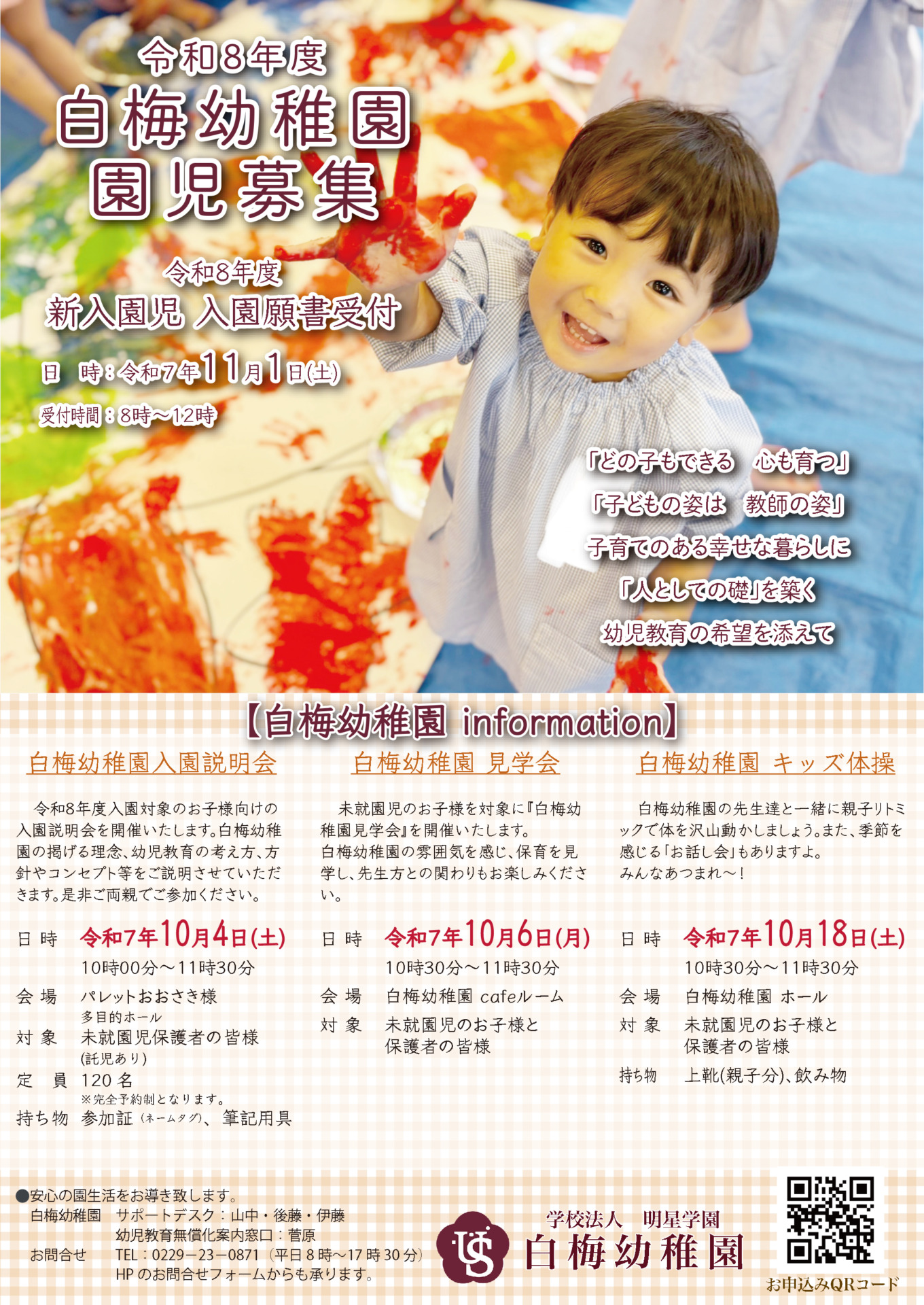 ARCHIVE 2026 2025.09.26 白梅幼稚園10月号 PREV 一覧へ戻る NEW 2026.02.27 幼稚園 《転入園相談会》 4/20(月)春の転入… 2026.02.17 未就園児教室 4月8日 春限定ベビ-マッサージ開催 2026.02.02 幼稚園 《0、1歳児 co.u.me cafe未… 2026.01.30 幼稚園 《未就園児対象》3/30 3/31 春の… 2026.01.22 未就園児教室 《未就園児対象》3/26 白梅幼稚園「春… CATEGORY すべて 幼稚園 未就園児教室 ARCHIVE 2026 検索