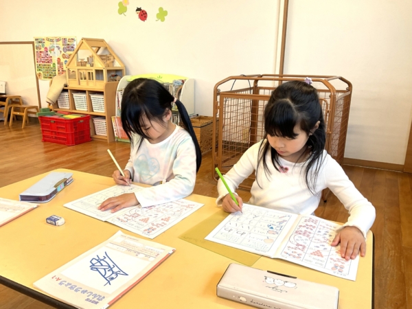 学習の様子(安心した環境のもとで過ごし、宿題+専用ドリルにも取り組み、学習習慣を身に付けます)
